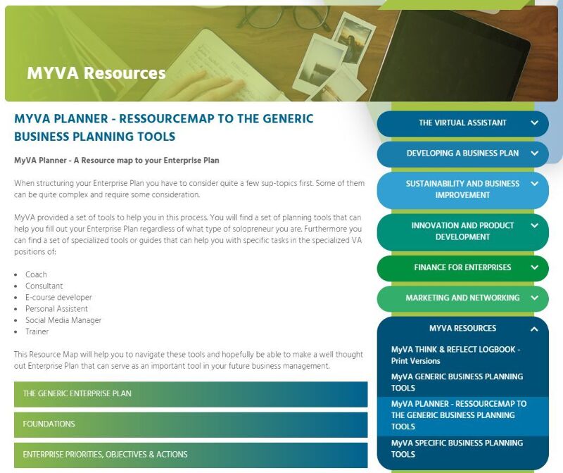 · Module 3: Sustainability and Business Improvement is designed to help entrepreneurs to improve the sustainability, efficiency, and performance of their enterprise and to create growth · Module 4: Innovation and Product Development is about role of innovation and creativity in improving existing products/services and developing new ones within a Virtual Assistant enterprise